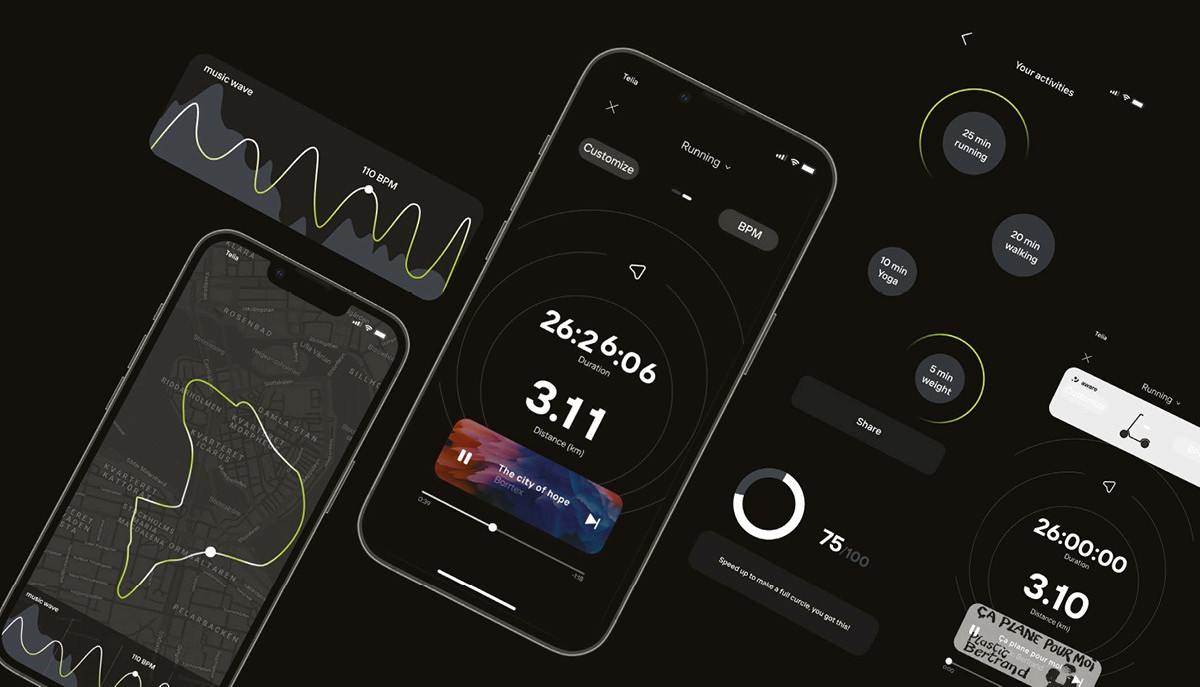 ‘aware’ is designed for urban runners to be aware of their surroundings regarding safety and motivation from listening to music while running. Sound signals from earphones warn runners about fast-approaching objects without compromising the music-listening experience.